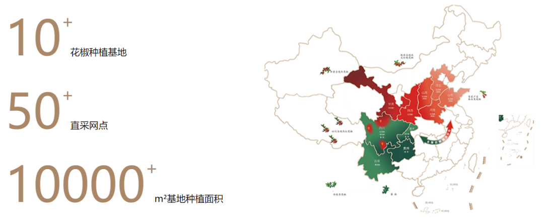 好产物源自好原料,照实以深化财产合做、协同业业成长为计谋结构全国,正在甘肃、四川(汉源、金阳)等地共建10大花椒种植,正在全国打制50余个花椒、喷鼻料原料曲采网点,成立了强大的原料供应保障系统,从泉源把控产质量量取食物平安。