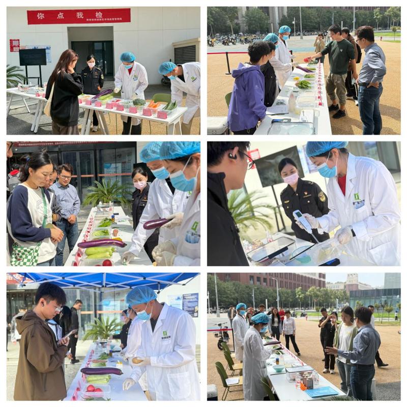 勾当现场,米面油、新颖蔬菜、餐具划一摆放,同窗们现场点选本人关心的食材及餐具,并检测全过程。市场监视办理局放置专业的查验检测人员对食用油质量、餐具干净度、蔬菜农残等项目进行快速检测,检测成果全数及格。
